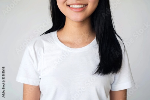 白いシャツを着た日本人女性(アジア人・ファッションモデル・正面・モックアップ)