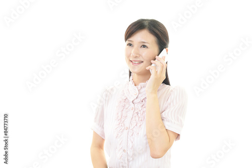 スマートフォンで会話中の女性