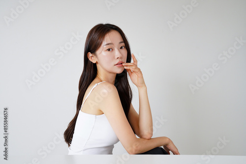 自然光で撮影をした若い女性の美容イメージ