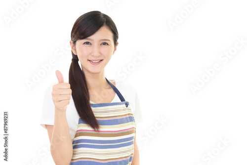 エプロンを着た笑顔の女性