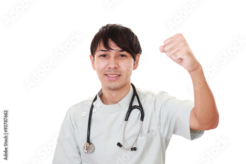 ガッツポーズの医師