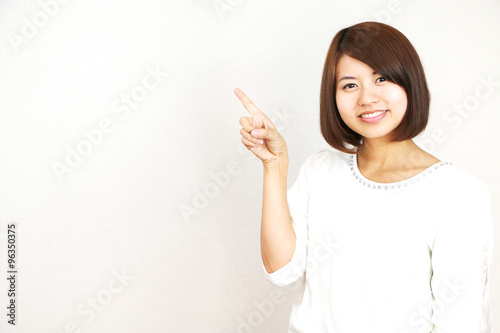 指を差す若い女性
