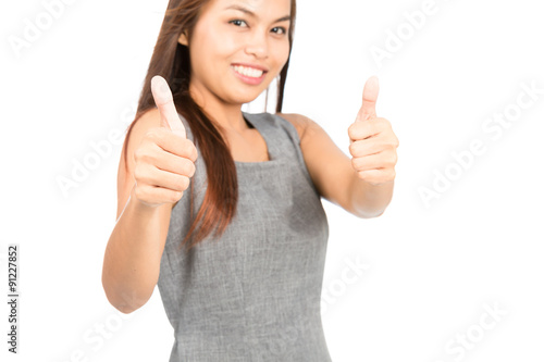 Focus On Thumbs Up Asian Woman Blurry Background