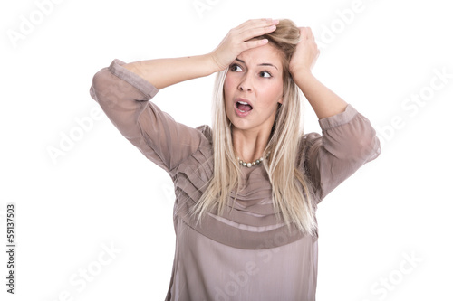 Frau isoliert in Angst und Schrecken - panisch.