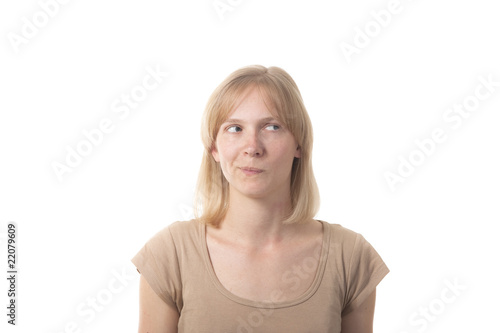 Frau schielt zur Seite