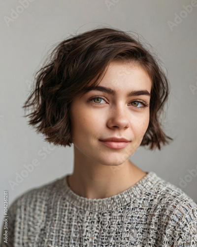 Freckled Girl with Short Hair on White Background: Charming Minimalist Portrait of a Natural Beauty
