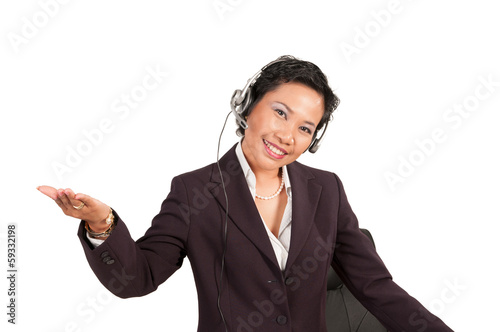Friendly beautiful asian women with headphone at the hotline
