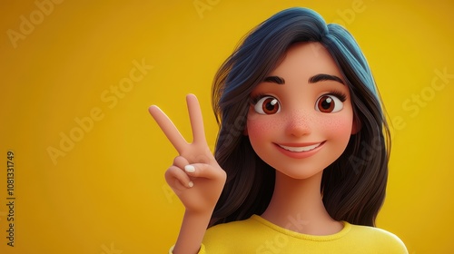 Friendly young woman making a peace sign with her hand symbolizing success and achievement cheerful studio portrait