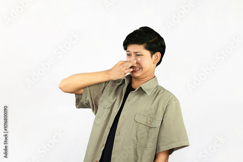 Frustrated, Irritated and Angry Young Asian Male Handsome Student Boy saying no gestures expressions