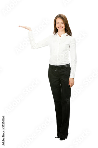 Full body business woman showing, isolated