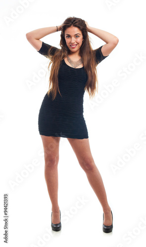 full body young pretty woman wearing a black dress