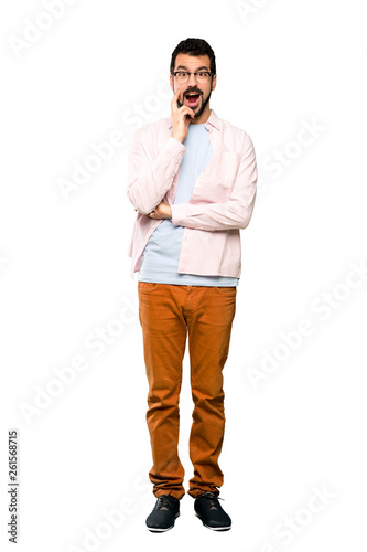 Full-length shot of Handsome man with beard with surprise and shocked facial expression over isolated white background