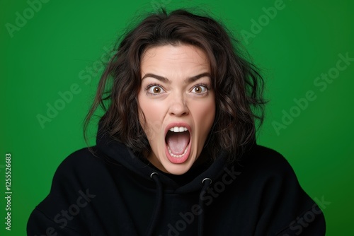 Furious woman expressing strong emotions in a studio setting with a clean background