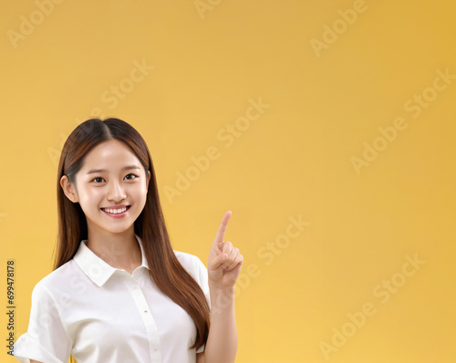微笑みながら指差す少女.generative AI