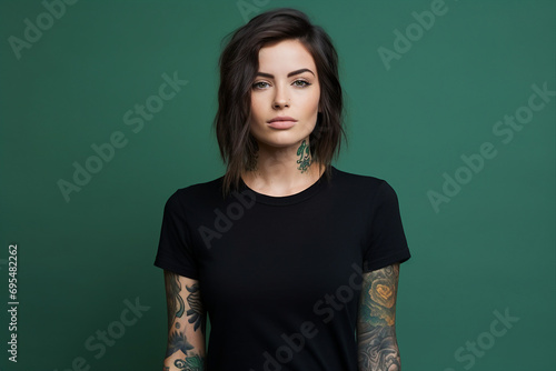 Generative ai photo image of a charming woman with tattooed hands and head