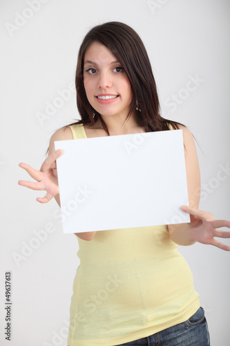 Giovane ragazza con cartello bianco