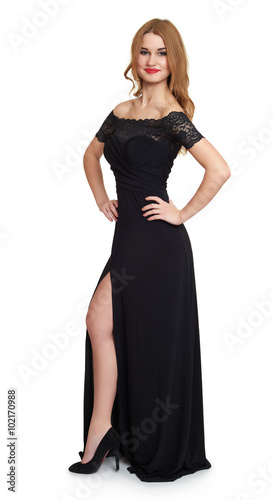 girl in black gown on white