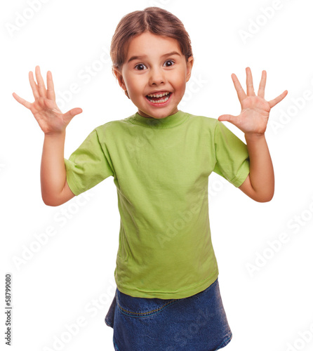 girl little pleased joyful surprise isolated