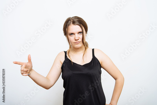 girl points to someone the finger