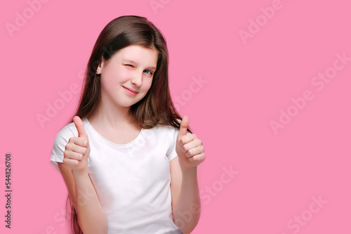 Girl showing thumbs up and winking