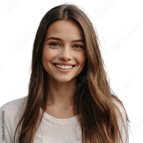 girl with braids and long straight hair smiling on a transparent background