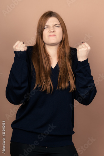 Girl with emotions sad anger mad scream