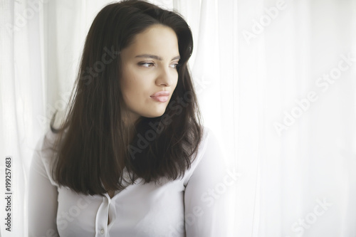 glamorous girl long hair large lips / concept beauty and fashion, young modern girl, bright fashionable appearance style.