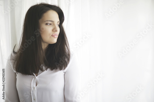 glamorous girl long hair large lips / concept beauty and fashion, young modern girl, bright fashionable appearance style.