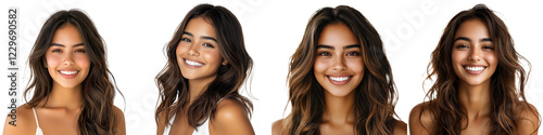 Glamorous studio headshot portrait of a confident and cheerful young woman with beautiful long brown hair natural makeup and a warm radiant smile