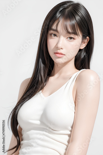 Gorgeous Young Female Model - Fashion or Cosmetics Model - Beauty with Perfect Fine Features - Beautiful Smooth Hair