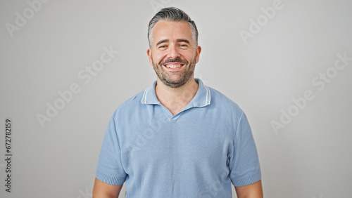 Grey-haired man smiling confident standing over isolated white background