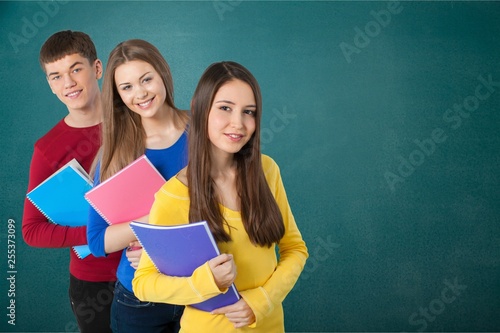Group of students with books isolated over a white background