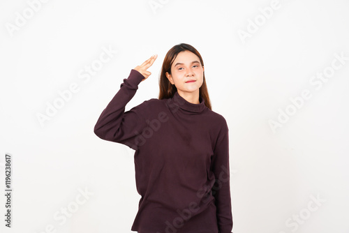 Gun finger on head Of Beautiful Asian Woman Isolated On White Background