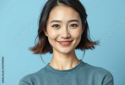 Half-length portrait of a 25-year-old female with a warm and calm expression