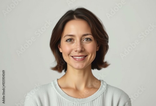 Half-length portrait of a 30-year-old female with a subtle smile