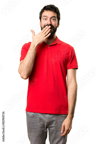 Handsome man making surprise gesture
