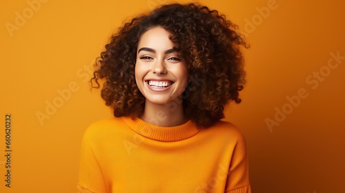 Happy beauty woman in orange color