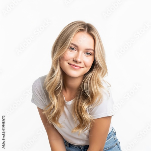 Happy Blonde Woman Smiling. Happy young blonde woman in her late teens smiling. Isolated on a white background