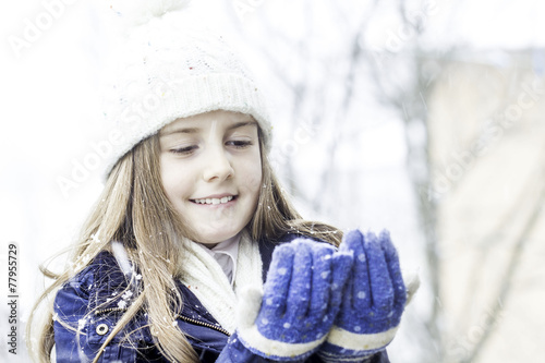 Happy little girl spending a time outdoor in winter