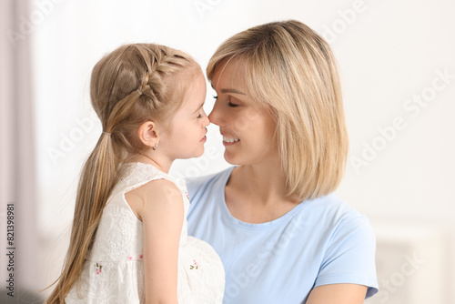 Happy mother and her daughter at home