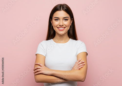 Happy Self-Assured Woman, standing with crossed arms and smiling.