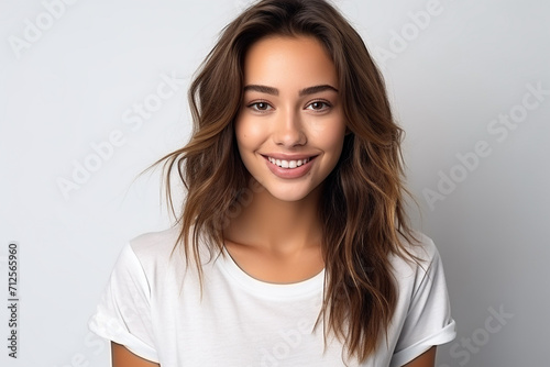 Happy woman with white shirt created with Generative AI