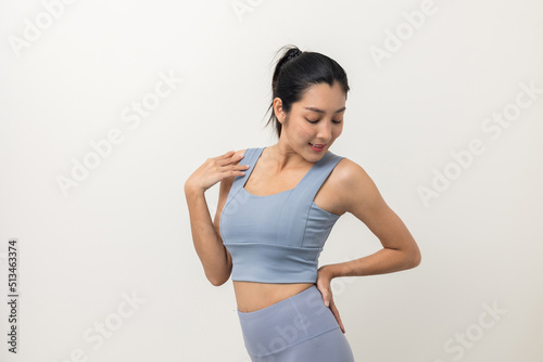 Happy Young beautiful asian woman with sportswear on isolated white background. Portrait sporty woman standing pose exercise workout in studio.