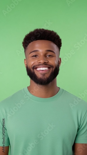 Happy Young Man Smiling Against Green Screen Background for Brand Ambassador Video or Creative Overlay Design