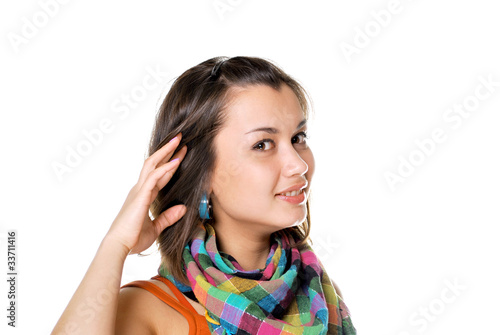 happy young woman smiling isolated on white background