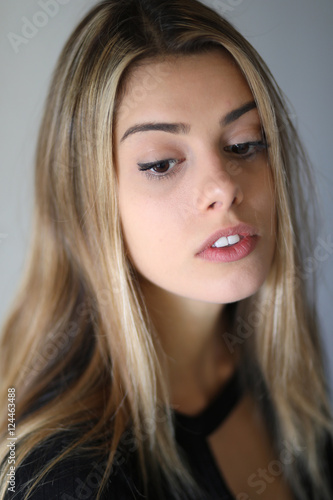 Head Shot of a Beautiful Blond Woman with Brown Eyes