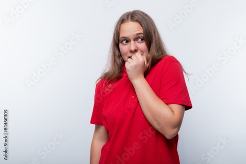 Headshot portrait of European teenage girl with surprise and shock