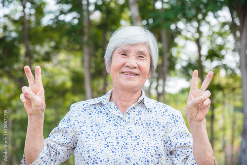 Healthy senior asian woman smiling in park