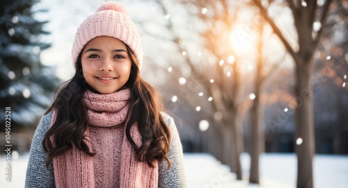 hispanic latino teen girl winter outdoor bright background wearing fashion portrait