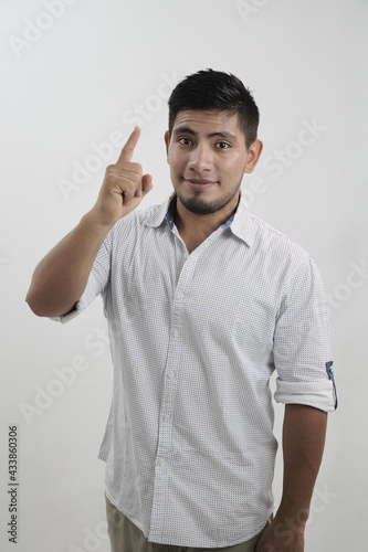 Hombre latino sonriendo haciendo gesto de afirmación o confirmación